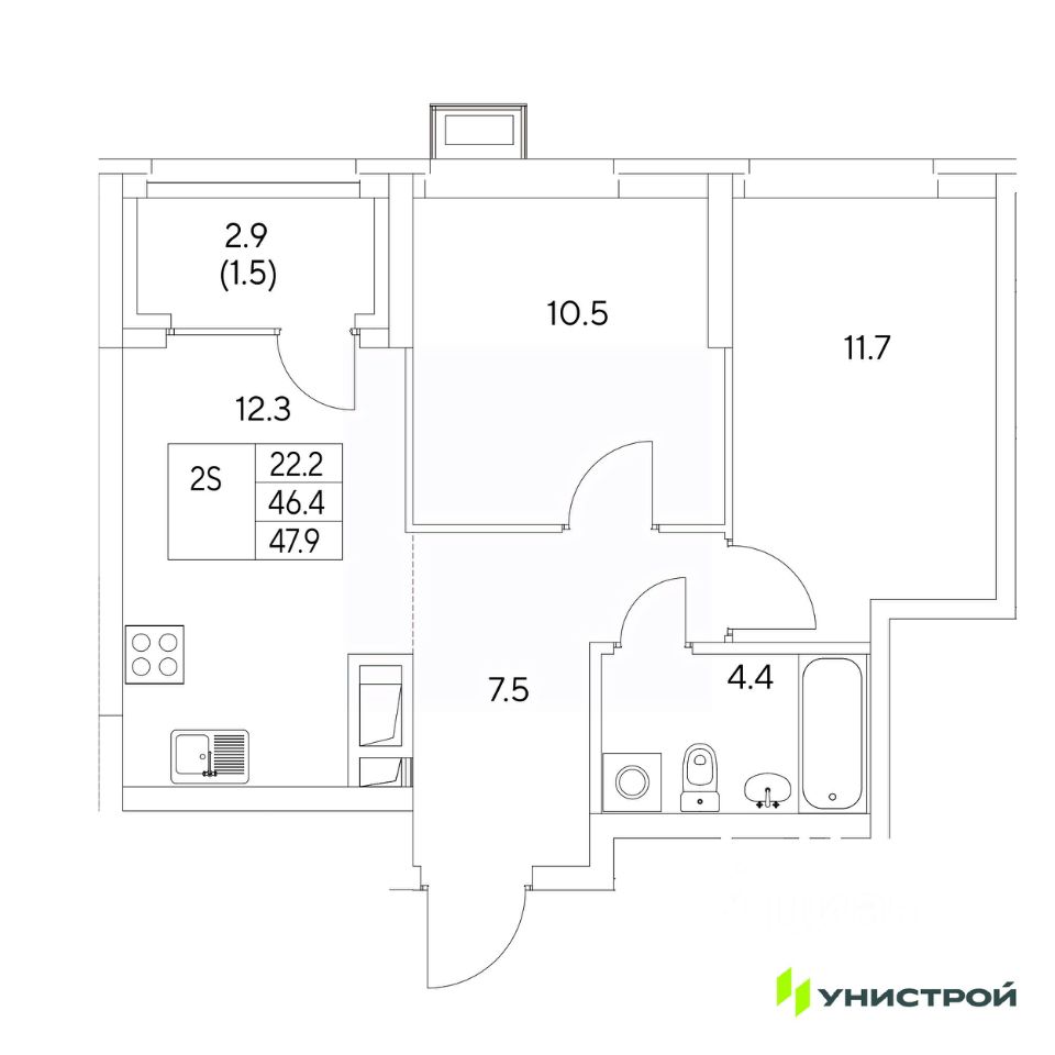 Общая площадь47,9 м²