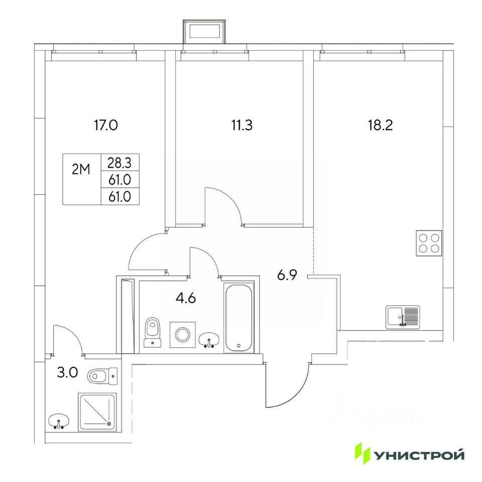 Общая площадь61 м²