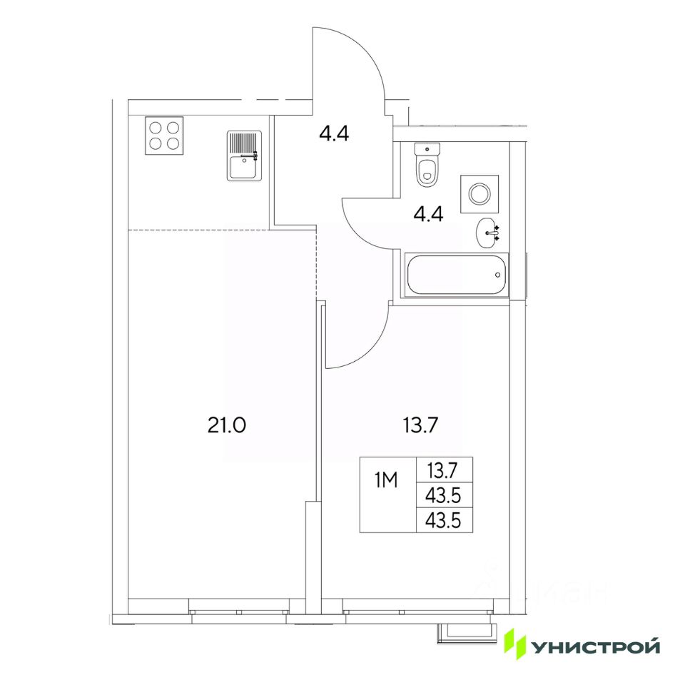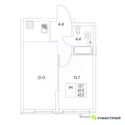 Общая площадь43,5 м²
