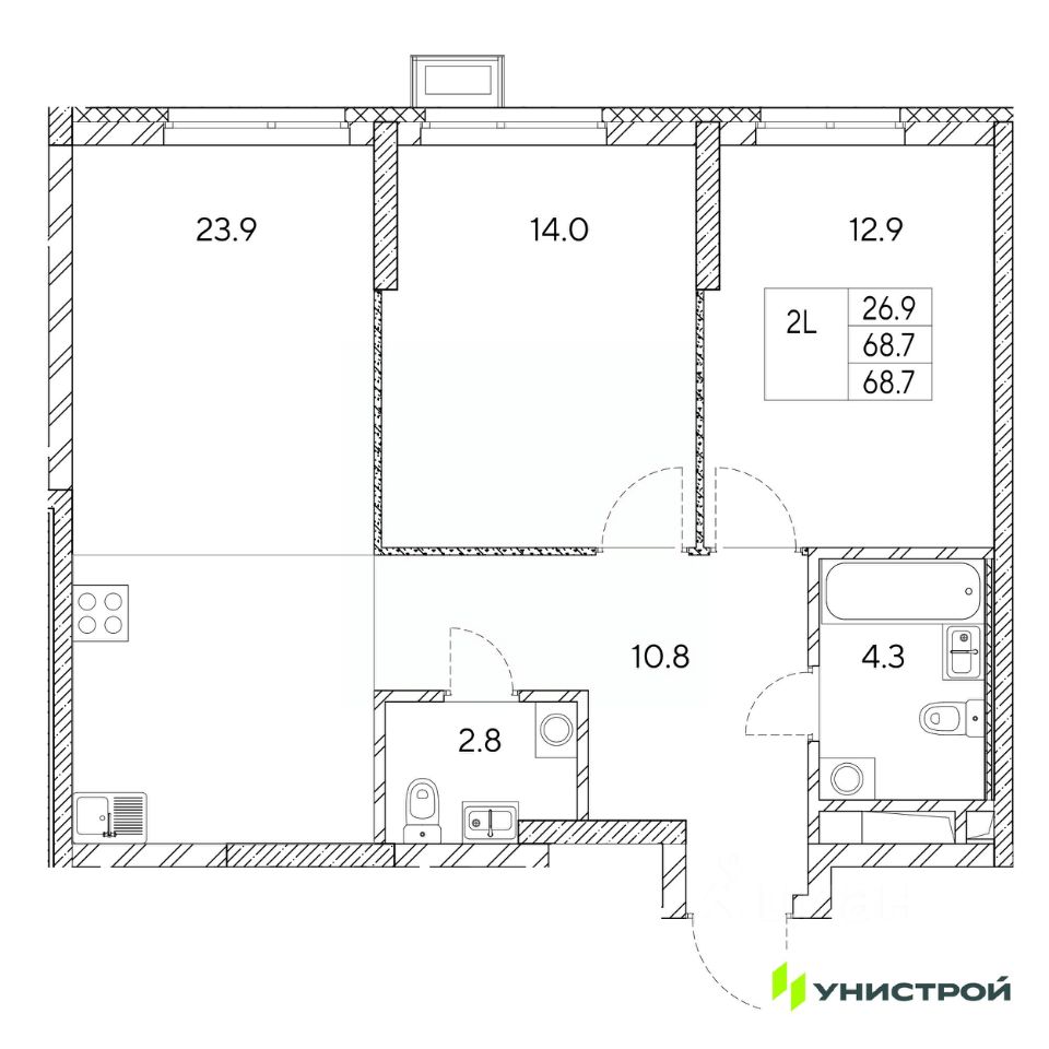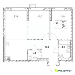 Общая площадь68,7 м²