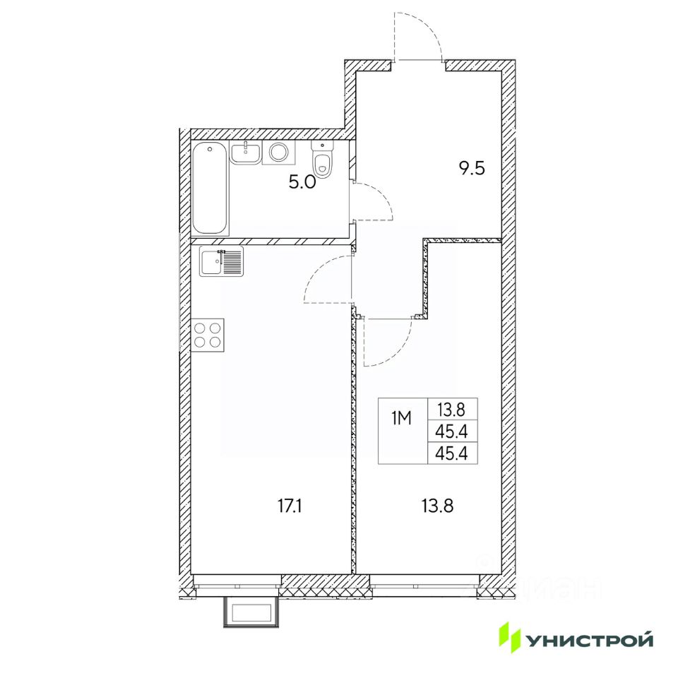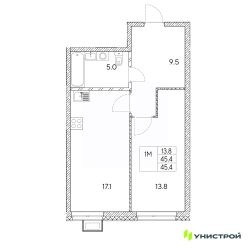 Общая площадь45,4 м²