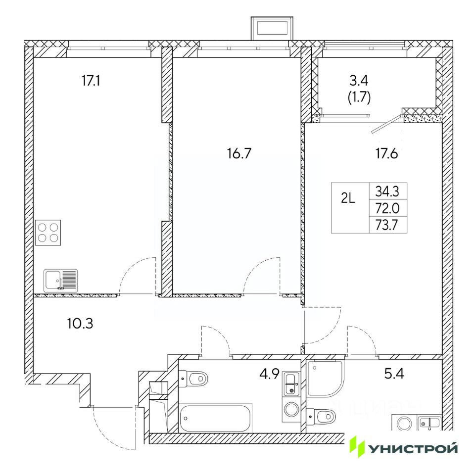 Общая площадь73,7 м²