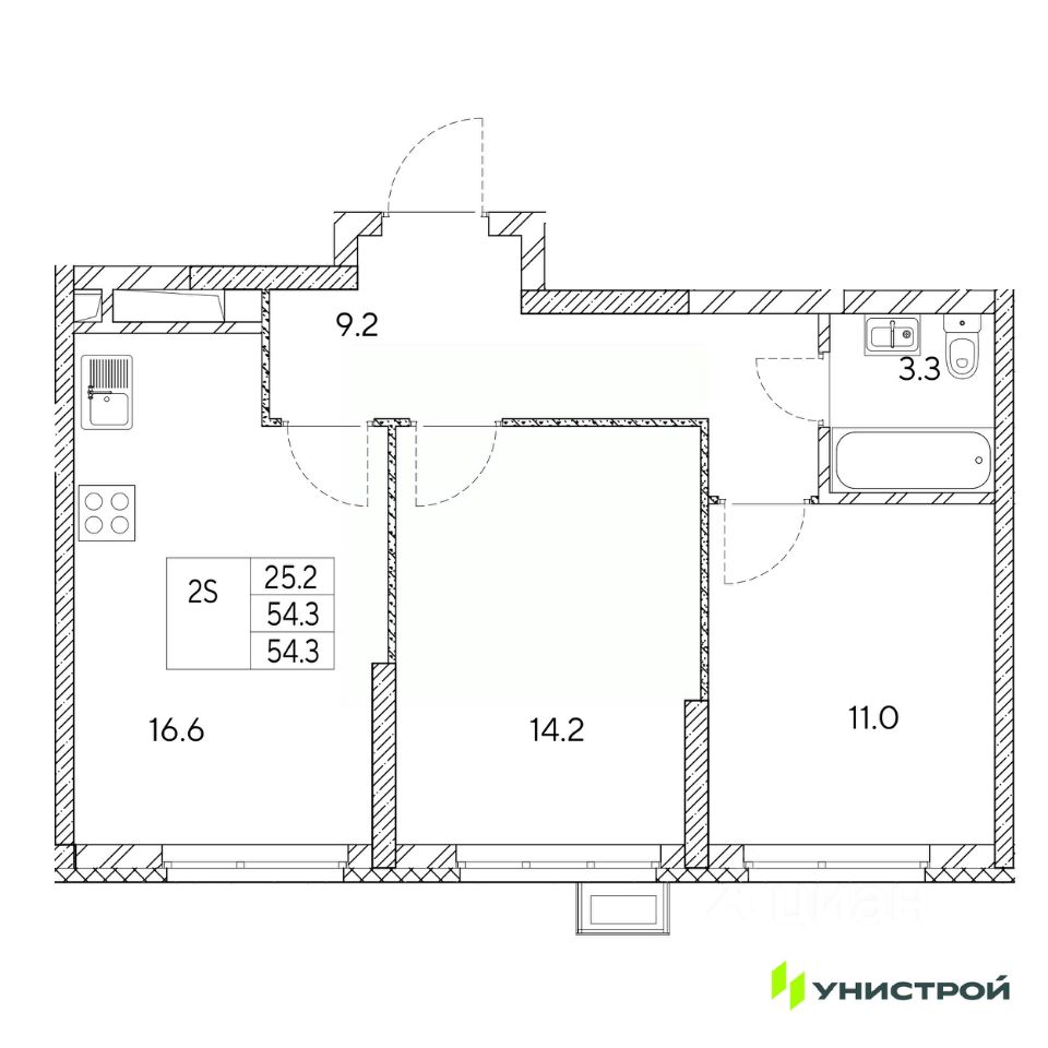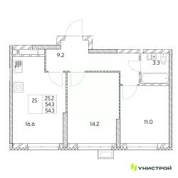 Общая площадь54,3 м²