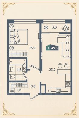 Высокие потолки 2,9 м — ощущение простора и больше естественного света.