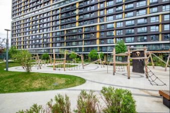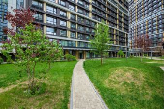 Благоустроенные дворы с прудом, зелёными аллеями, спортивными и детскими площадками.