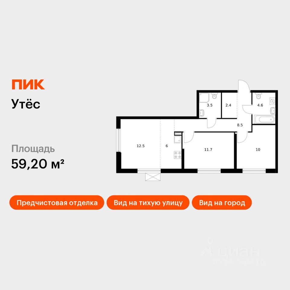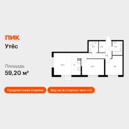 Продаётся 2-комн. квартира площадью 59,2 кв.м на 25 этаже 29 этажного дома (Корпус 3, Секция 1) проекта ПИК Утёс. Светлый просторный подъезд на уровне земли, функциональная планировка, большие окна, предчистовая отделка.