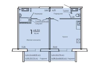 Площадь 52,54 м² свобода планировки под ваш стиль жизни