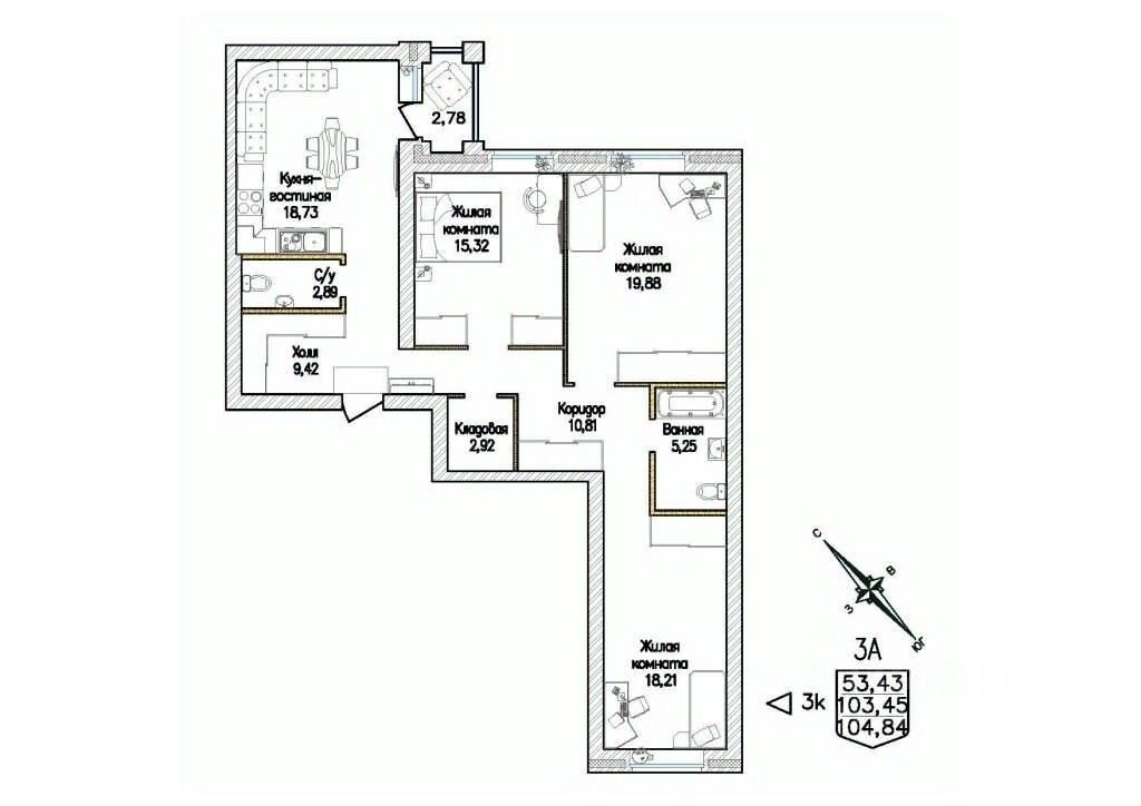 Продаётся 3-комнатная квартира в сданном доме (Тюльпановая, 7А (Дом 4)), срок сдачи: IV-кв. 2022, общей площадью 104.84 кв.м., на 2 этаже. ЗЕЛЕНАЯ ГОРКА - ПЕРСПЕКТИВНЫЙ ЖИЛОЙ РАЙОН В СЕВЕРНОЙ ЧАСТИ ЕКАТЕРИНБУРГА ВБЛИЗИ ПРИРОДЫ