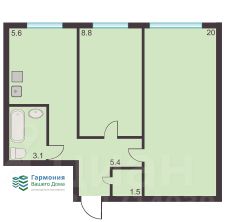 Продается 2-комнатная квартира в кирпичном доме — 44.4 м²