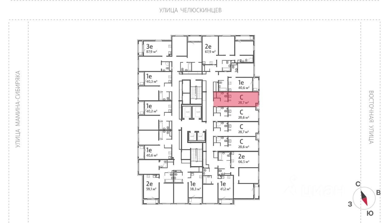 Квартира располагается на 19 этаже 25-этажного дома в ЖК Азина, 16.