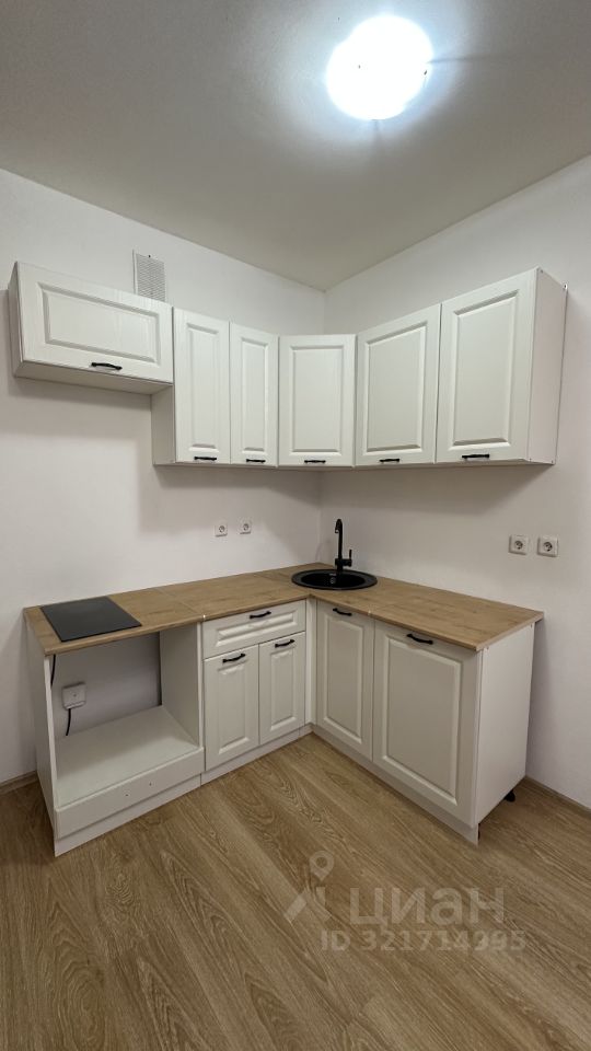 В квартире остается диван, красивый кухонный гарнитур с встроенной плитой, раковина.