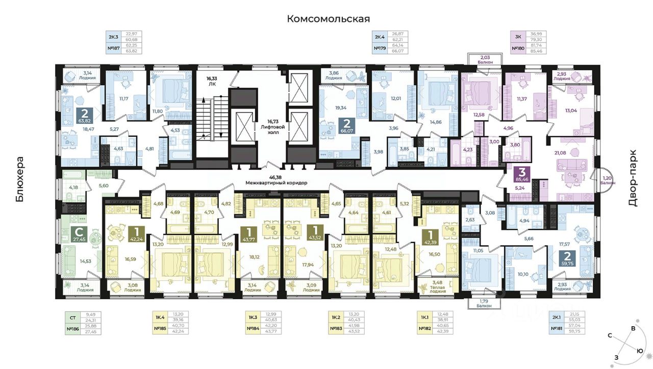 Бесшумные, скоростные лифты.