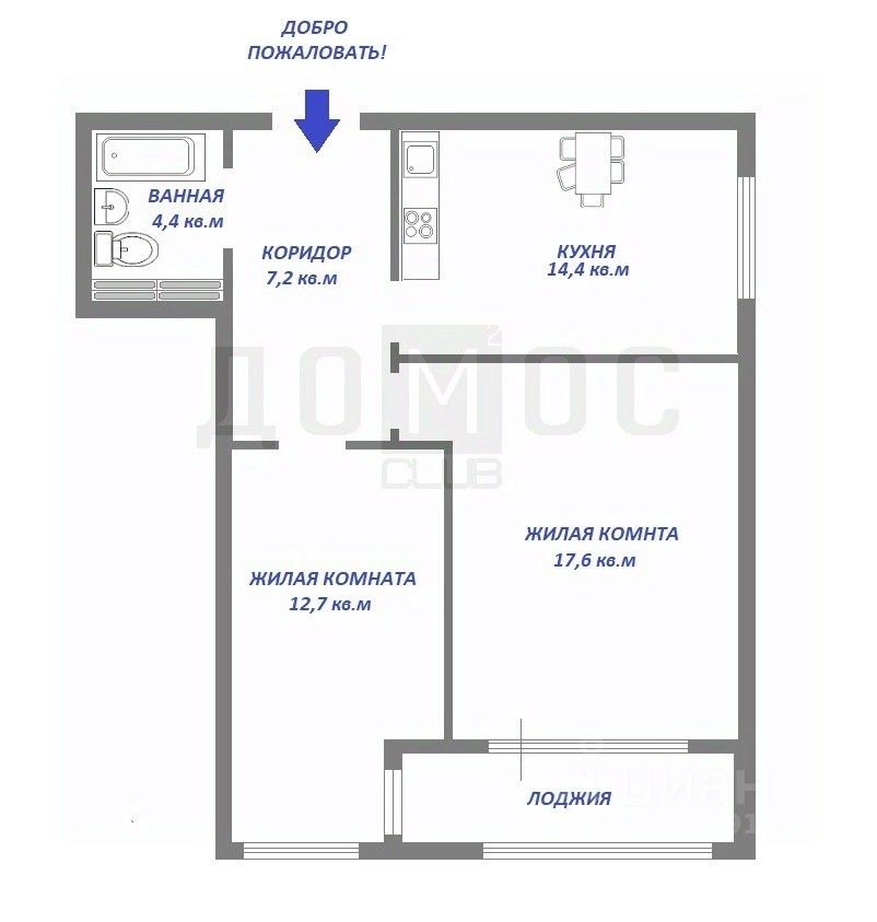 ПРОСТОРНАЯ ДВУШКА В СВЕТЛОМ