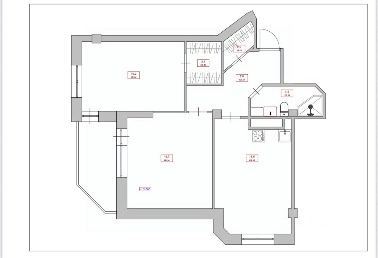 Высота потолков 3 метра. Окна выходят на юго-восток.