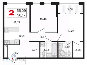 Продаётся стильная двухкомнатная квартира с прекрасным ремонтом на 14 этаже 25-этажного дома. Площадь квартиры составляет 58.17 кв.м., а кухня площадью 15.08 кв.м. идеально подойдёт для приготовления вкусной еды и уютных посиделок за столом.
