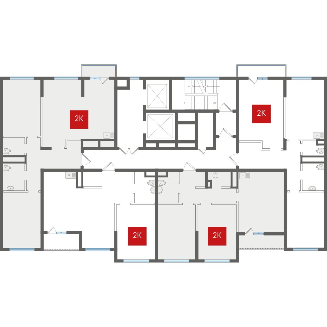 Отделка под чистовую. В санузле — монолитный потолок, на полу — гидроизоляция и стяжка, стены оштукатурены. В одном санузле установлены унитаз и раковина. В остальных помещениях потолок — монолит, на полу — стяжка, стены оштукатурены.