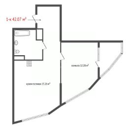Объект характеризуется рациональной планировкой с четким зонированием: изолированная спальня площадью: 12,2 м² и большая кухня-гостиная: 15,26 м², что создает комфортные условия для жизни.
