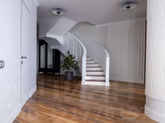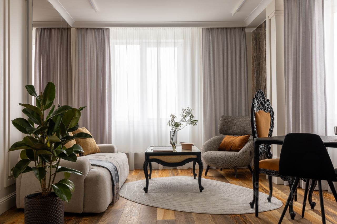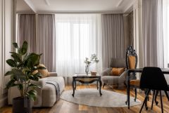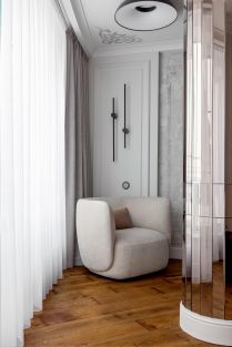 Это квартира вне времени: современные тенденции в интерьере умело сочетаются с антикварной классикой. Над обстановкой работали профессиональные дизайнеры и архитекторы высшей квалификации. Им удалось сохранить в интерьере динамику, избежав обилия прямых углов. В такой обстановке будет комфортно жильцам любых возрастов — она останется актуальной навсегда.