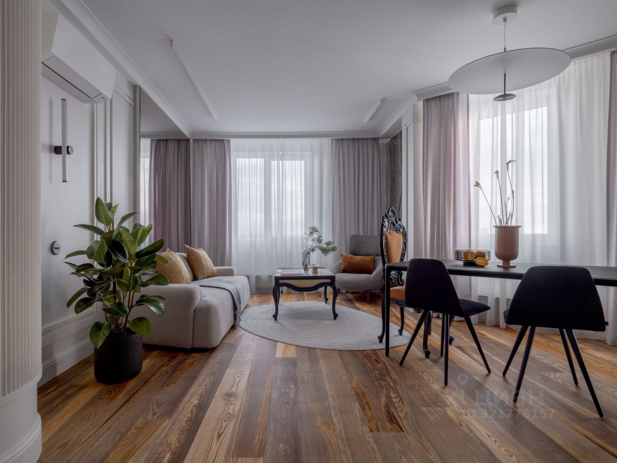 Гармония пространства, созвучная с лучшими произведениями классической музыки, плавно соединяет великолепное внутреннее убранство квартиры с просторной террасой и уходящими в горизонт панорамными видами.