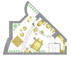 — Красота и технологичность интерьера наполнена произведениями мебельных мастеров Италии, Франции, Англии и Нидерландов. В меблировке использовались такие бренды, как Novamobili, Natuzzi. За освещение отвечают премиальные люстры и светильники Tom Dixon и Lumina. — Большая часть мягкой мебели привезена с международной выставки в Милане. Кроме того, представлены антикварные предметы мебели 19 века, купленные во Франции на выставке антикваров в Бордо, привезенные в Санкт-Петербург и бережно отреставрированные там мастерами.
