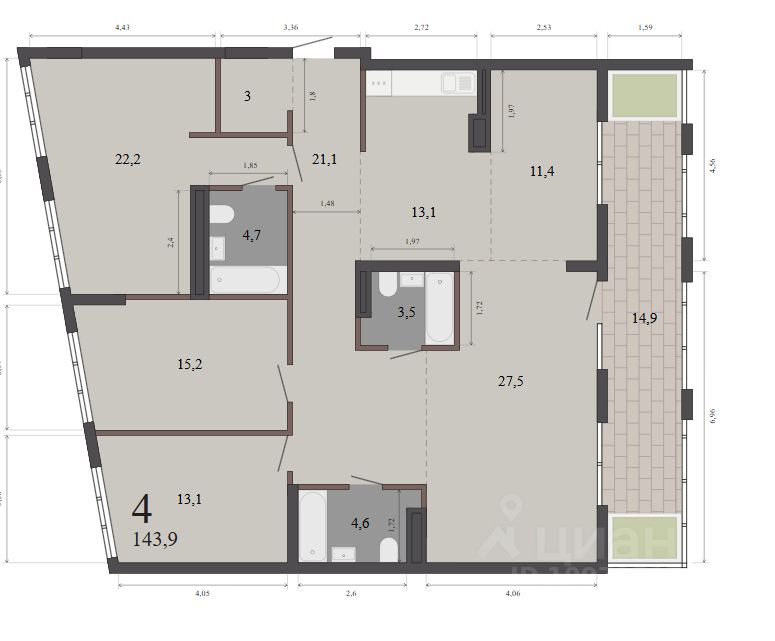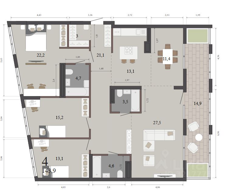 Продаётся 4-комнатная квартира в сданном доме (Машинная, 4 (Дом 4)), срок сдачи: IV-кв. 2023, общей площадью 145.4 кв.м., на 12 этаже. Жилой квартал рядом с центральным парком имени Маяковского, в квадрате улиц Фурманова, Машинной и Цвиллинга. Здесь появятся две жилые группы, офисный центр, аллеи для прогулок и подземные парковки.