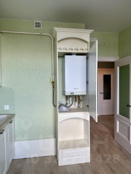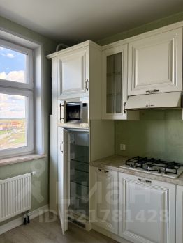 На кухне фреска изготовлена на заказ. Кухонный гарнитур со встроенной бытовой техникой.
