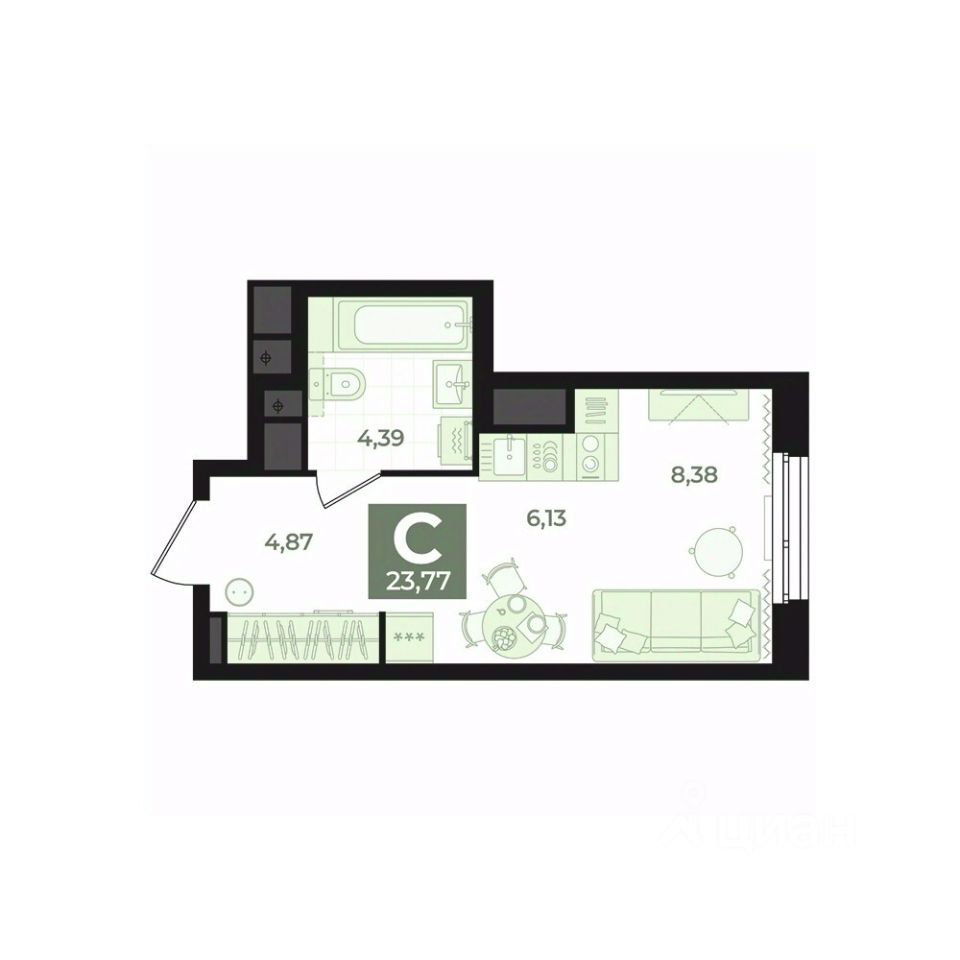 Общая площадь23,77 м²