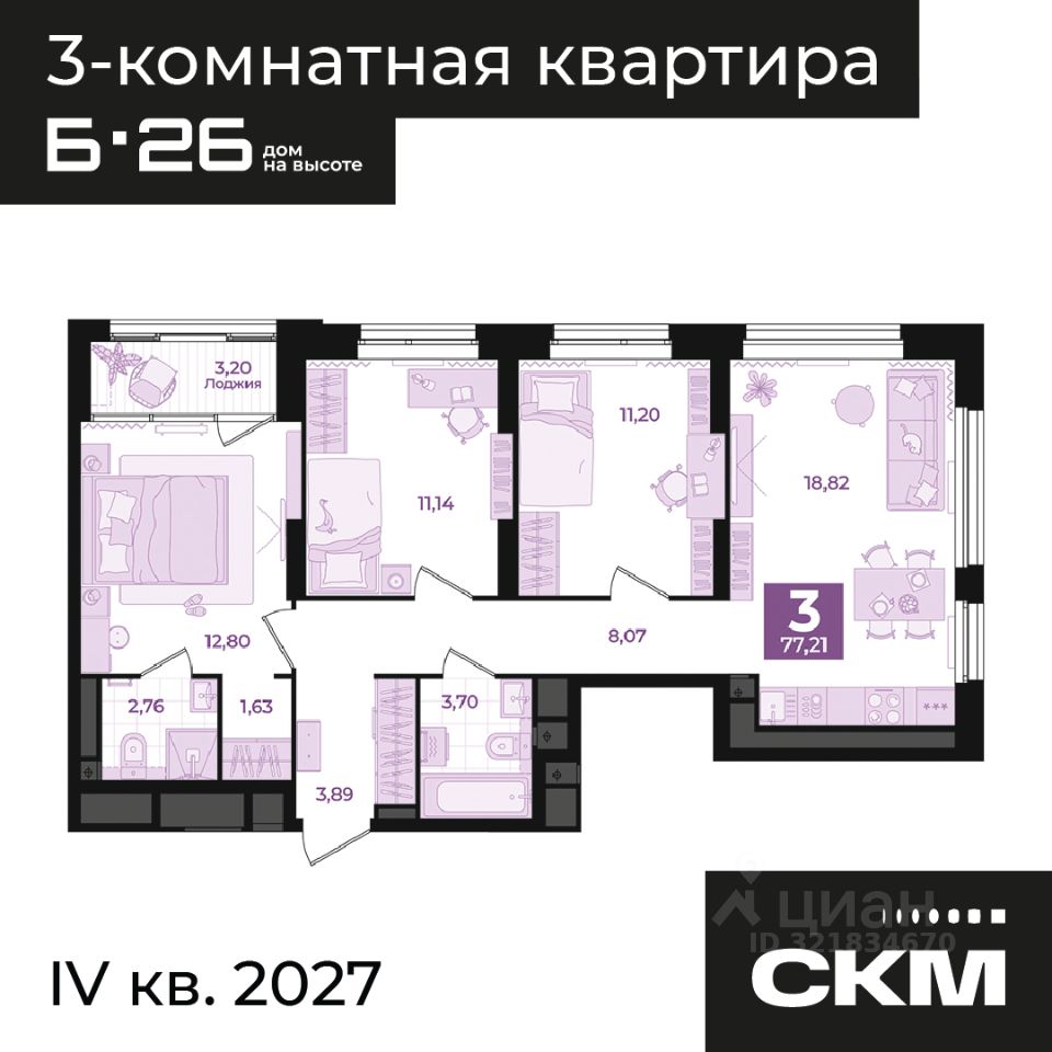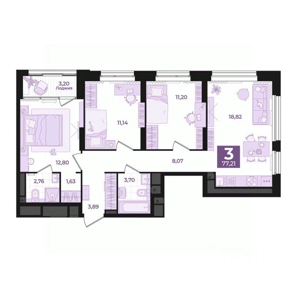 Общая площадь77,21 м²