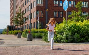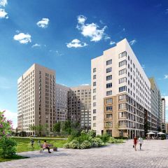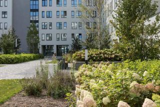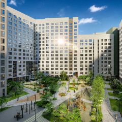 Двор закрытый с детскими площадками для всех возрастов и спортивными сооружениями. Район очень зелёный. На первых этажах коммерческие помещения.