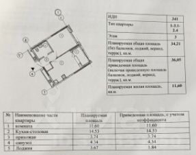 Удачная планировка: просторная кухня-гостиная площадью 14,5 м2 с выходом на лоджию, жилая комната площадью 11,6 м2, совмещенный санузел и вместительный коридор с нишой для хранения !