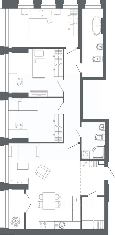 уникальную для многоквартирных домов индивидуальную систему приточно-вытяжной вентиляции с рекуперацией воздуха, что даёт постоянное обновление воздуха