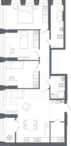 Квартиры отличаются продуманными планировками (от 30,6 до 110 м²) и высокими потолками (от 2,75 до 3,5 м). Дома имеют класс энергоэффективности А и целый ряд энергоэффективных решений: