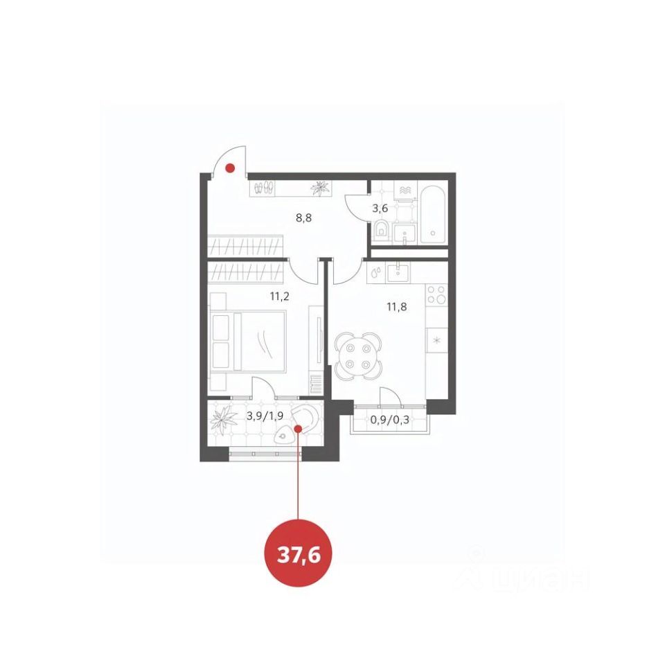 Общая площадь37,63 м²