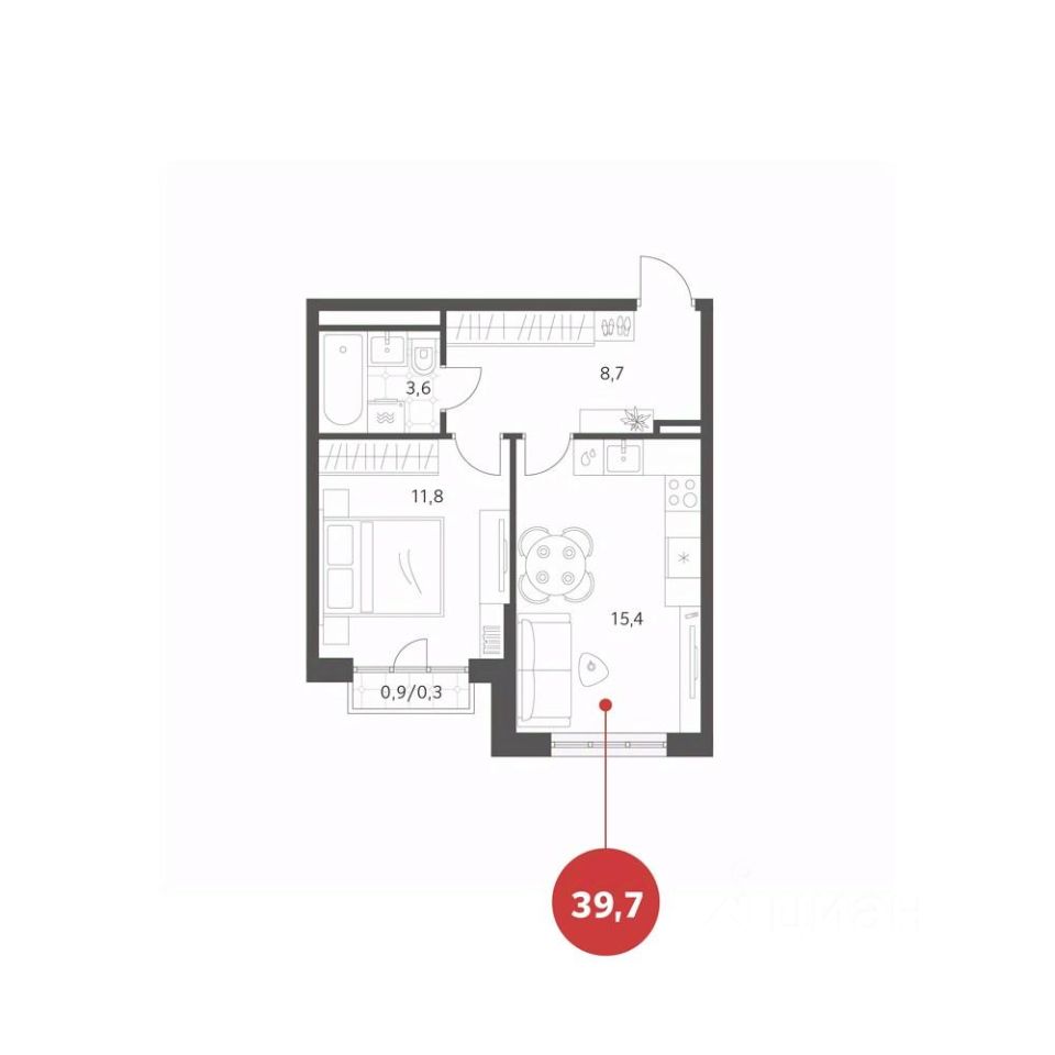 Общая площадь39,65 м²