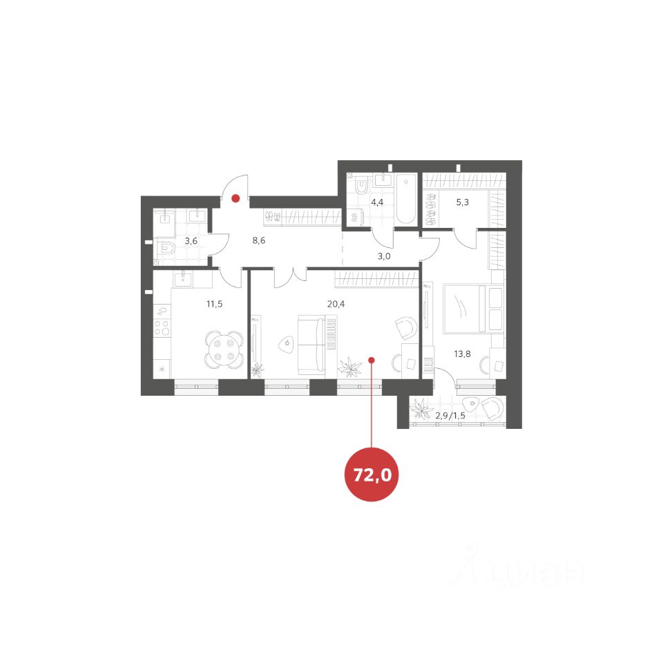 Площадь кухни11,5 м²