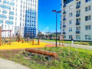 * Новая современная детская площадка, где безопасно могут играть дети.