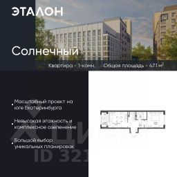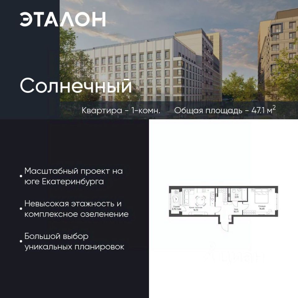 Продается квартира 125, по адресу Свердловская обл., г. Екатеринбург, Чкаловский район, корпус Солнечный, блок 5.4, корпус 1 в Солнечный на 7 этаже, с площадью 47.1 м2.