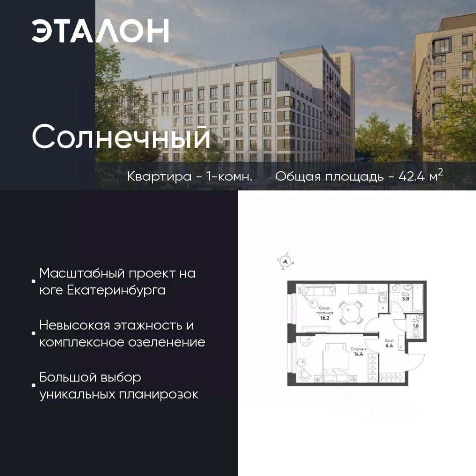 Продается квартира 598, по адресу ЖК "Солнечный", корпус Солнечный, блок 7.3-7.4, корпус 1 в Солнечный на 7 этаже, с площадью 42.4 м2.