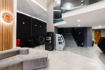 В дизайнерском холле-парадной 24/7 функционирует ресепшн с расширенным набором услуг, организована зона ожидания с кофейней где можно не только заказать кофе, но и позавтракать или перекусить, а так же поработать или проводить деловые встречи не выходя из башни.