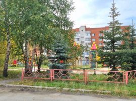 Двор большой с хорошей детской игровой плащадкой, огорожен голубыми елями и другими деревьями!