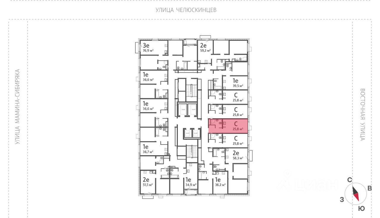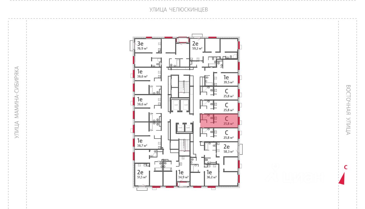 Квартира располагается на 9 этаже 25-этажного дома в ЖК Азина, 16.