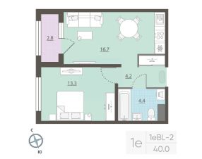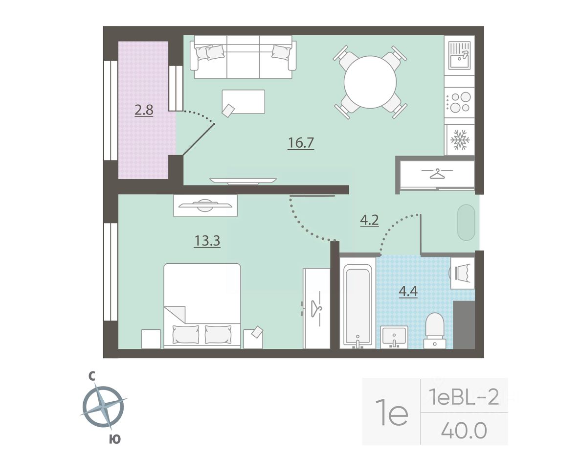 Жилая площадь 13.5 м2, кухня 16.9 м2, отделка под ключ. Раздельных санузлов - нет, балконов - нет, лоджий - 1.