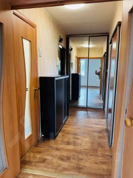 В квартире есть два шкафа-купе, кухонный гарнитур, электрическая плита, водонагреватель.