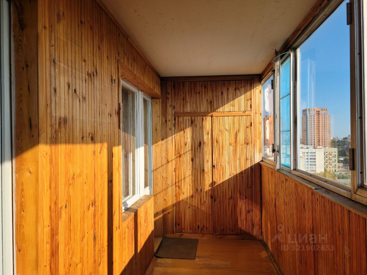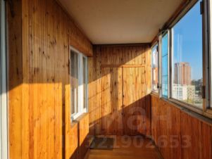 Балкон утеплен, обшит вагонкой и оборудован встроенными шкафами.