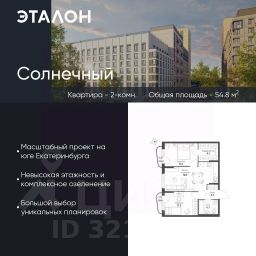 Продается квартира 317, по адресу Свердловская обл., г. Екатеринбург, ул. Счастливая, корпус Солнечный, блок 11.2 в Солнечный на 3 этаже, с площадью 54.8 м2.