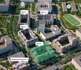 Площади гармонично связаны с небольшими скверами. Один из них, например, расположен рядом с Домами 3 и 4. Здесь появится плэйхаб, спортивная площадка, сенсорная тропа, которая оказывает терапевтический эффект, и небольшой пруд с детской колонкой.