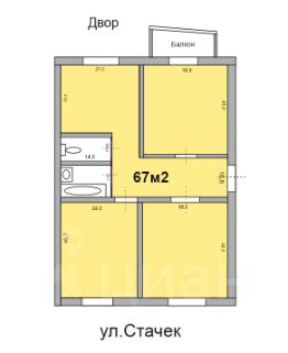 Расположение комнат на две стороны, на улицу Стачек и во двор.