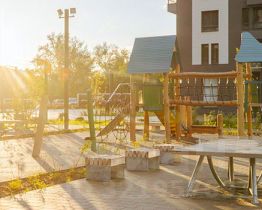 Проект включает шесть домов и многоуровневый паркинг. На первых этажах открываются кафе, магазины и полезные сервисы. А в уютных дворах-парках есть детские и спортивные площадки.