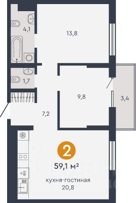 Общая площадь59,1 м²