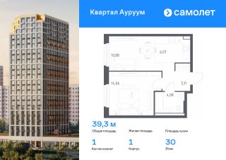 Строим кварталы для жизни с заботой о будущем. Предлагается 1-комнатная квартира бизнес-класса 39,3 кв.м в корпусе 1 на 30 этаже, в ЖК "Квартал Ауруум"